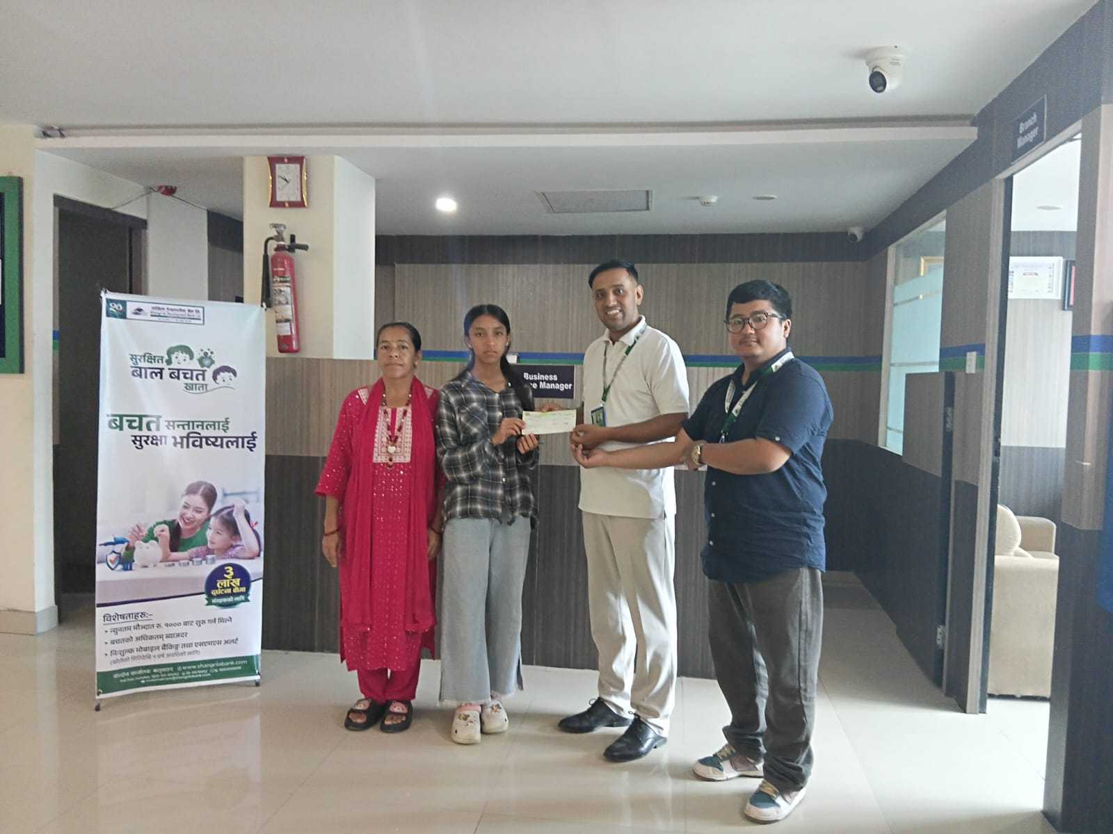 सांग्रिला डेभलपमेन्ट बैंकमा सुरक्षित बाल बचत खाता खोल्नुभएकी बालिकाका संरक्षकको मृत्यु भएपछि परिवारलाई विमाङ्क रकम हस्तान्तरण गरिएको छ । सांग्रिला...